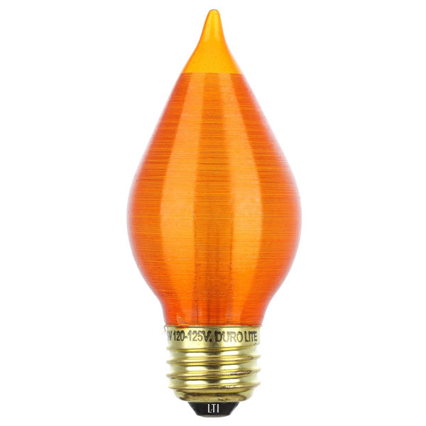 Duro-Lite incandescent light bulbs last much longer than standard incandescent light bulbs with an average rated life of up to 6,000 hours. Designed for decorative applications, Duro-Lite light bulbs have a 2-year residential warranty.This 25-watt C15 Duro-Lite Flamescent incandescent light bulb has an amber finish and a fiberglass winding that simulates the look of a real flame. It is perfect for chandeliers and decorative fixtures.