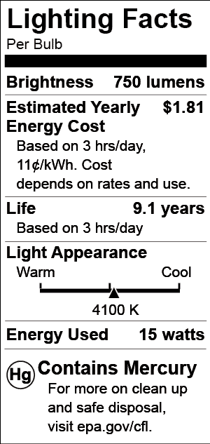 Spiral-Lite Covered CFLs come in a variety of familiar shapes to combine the energy savings of a compact fluorescent with the attractive look and feel of an incandescent light bulb. These energy savings lower utility bills and reduce greenhouse gas emissions for a cleaner environment.This 15-watt R30 Spiral-Lite Covered CFL can replace 65-watt incandescent R30 light bulb in a variety of applications, such as recessed cans and track lighting. It has a 4100K color temperature and a long 10,000-hour life that reduces replacement and maintenance costs.