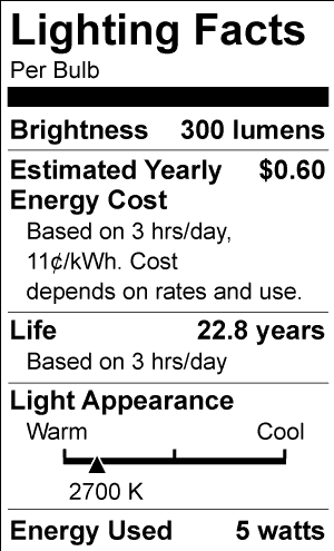 - Incandescent Equivalent: