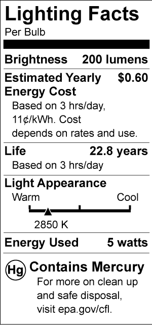 Micro-Brite cold cathode light bulbs are dimmable down to 5% of their light output. They provide smooth dimming control that works just like incandescent on standard dimmers, so no additional equipment is necessary. They can also be used in flashing signs without shortening their super long 25,000-hour life.This 5-watt A19 Micro-Brite light bulb has a clear finish and can replace a 30-watt A19 incandescent bulb to provide up to 85% energy savings. It has a warm white 2850K color temperature.