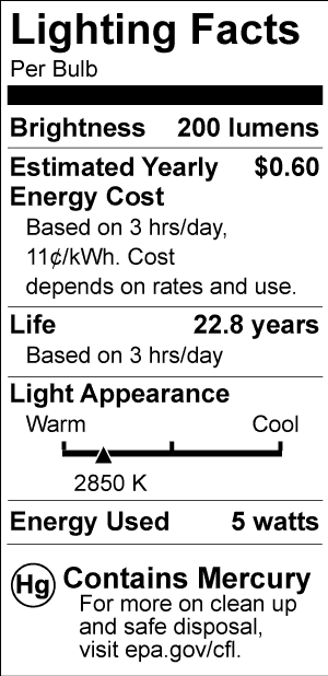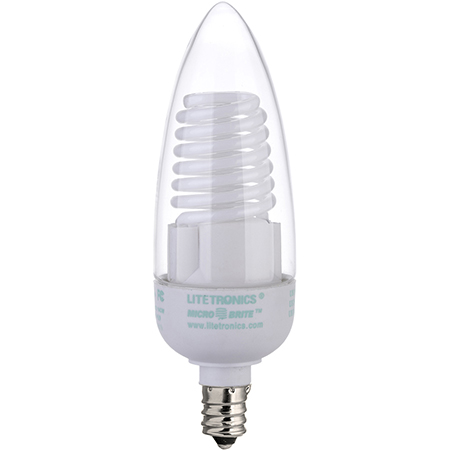 Micro-Brite cold cathode light bulbs are dimmable down to 5% of their light output. They provide smooth dimming control that works just like incandescent on standard dimmers, so no additional equipment is necessary. They also have a super long 25,000-hour life that drastically reduces maintenance and replacement costs.This 5-watt C11 bullet tip Micro-Brite light bulb has a clear finish and can replace a 30-watt C11 incandescent bulb to provide up to 85% energy savings in a variety of decorative applications, such as chandeliers, vanities, and wall sconces. It has a warm 2850K color temperature and a candelabra base.
