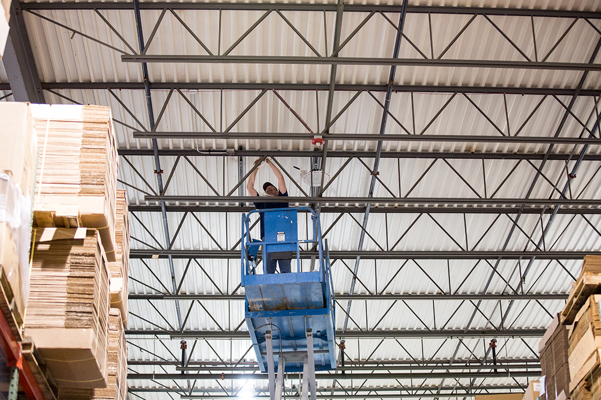 When power fails in a large space, like a warehouse, it can be hard to navigate long, tall aisles to find the closest exit. This LED Emergency Light was designed specifically for high ceiling environments. In times of power loss, it automatically switches to battery power and delivers light for up to 90 minutes, helping occupants navigate their way to safety.