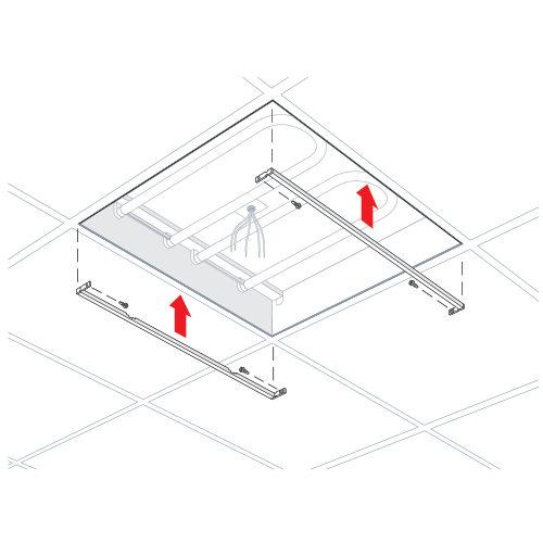 It’s patented design makes installation simple and quick. The kit can be installed by one person in less than two minutes, without breaking into the ceiling plenum.