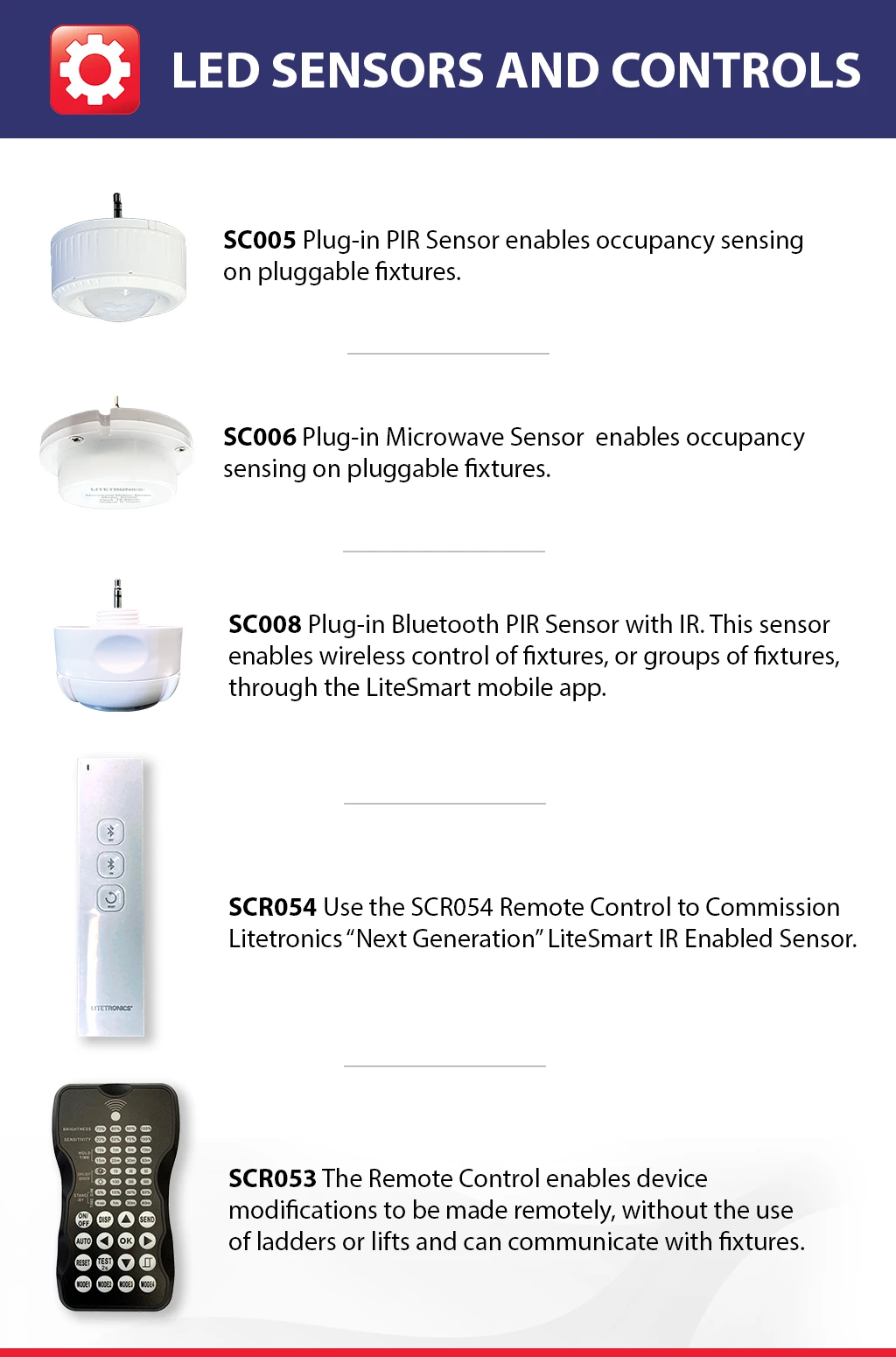 As an added benefit, use of the optional microwave and PIR motion sensor takes savings a step further, enabling occupancy sensing and daylight harvesting, each fully programmable with the LiteSmart App.