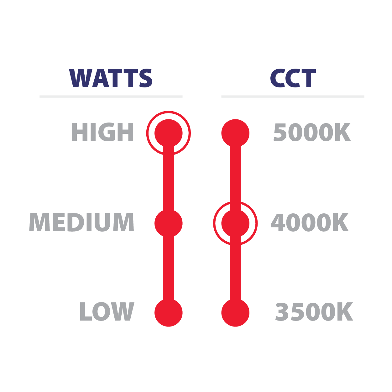 - Choose from three unique color temperature options (3500K, 4000K or 5000K)