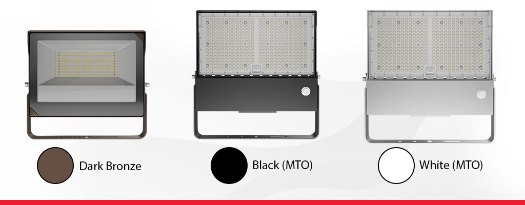 Ideal for lighting everything from parking lots and signs to store fronts, statues/monuments, flag poles, and more, Litetronics’ five new LED outdoor flood lights and area lights are each available in three color temperatures and three field-adjustable wattages, enabling installers or end users to achieve the perfect combination of aesthetics, color temperature, and lighting output for their unique application.