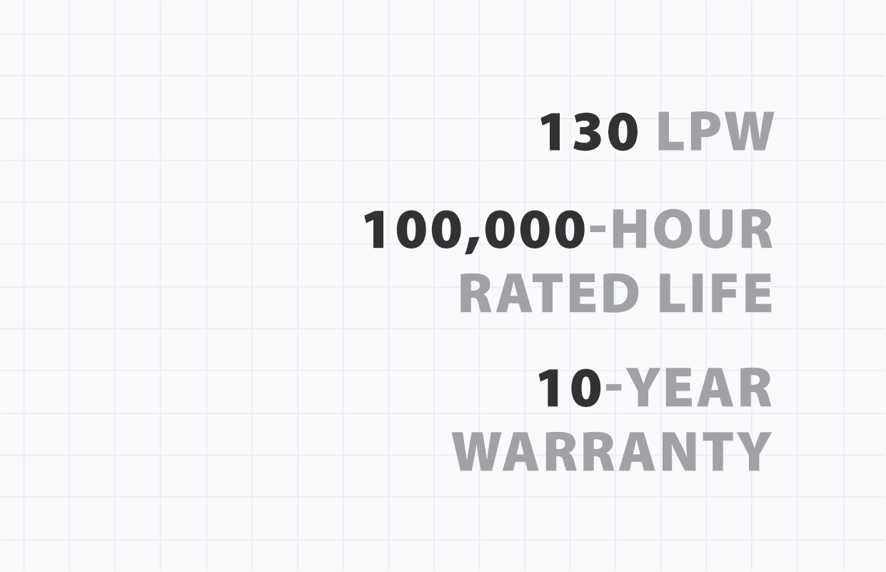 This LED strip retrofit kit is rated at 100,000 hours (at L70) and backed by a 10-year warranty, resulting in well over a decade of uninterrupted, highly efficient light.