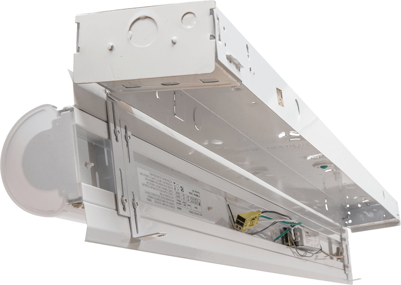 - Once the lens, bulbs and ballast are removed, the housing will remain to accommodate the LED Strip Retrofit